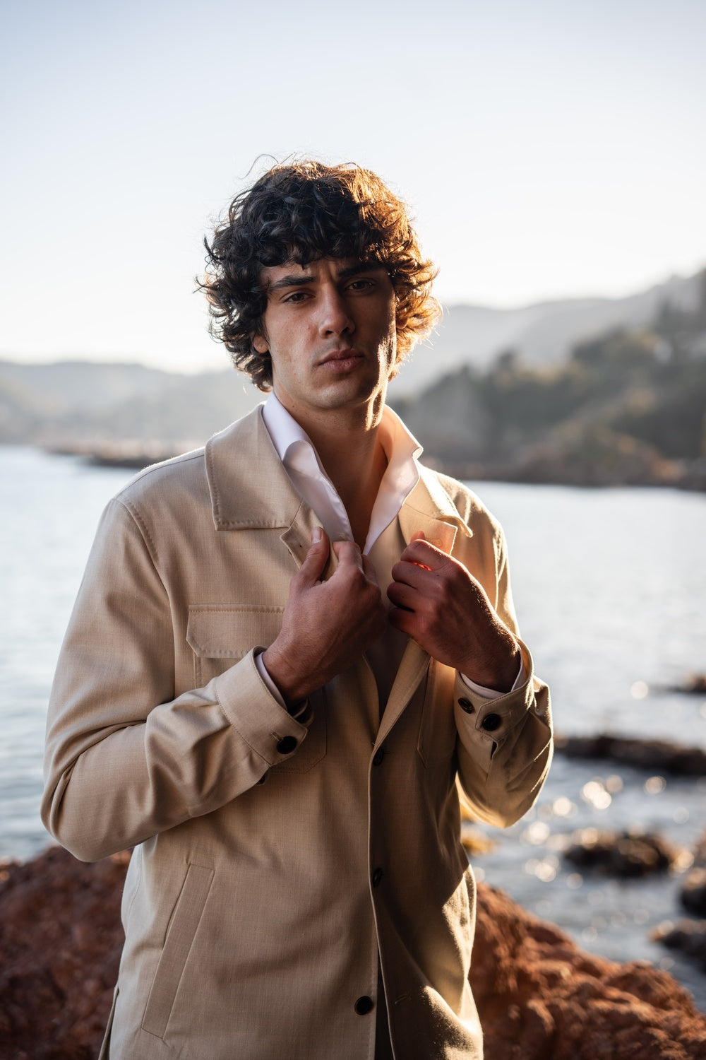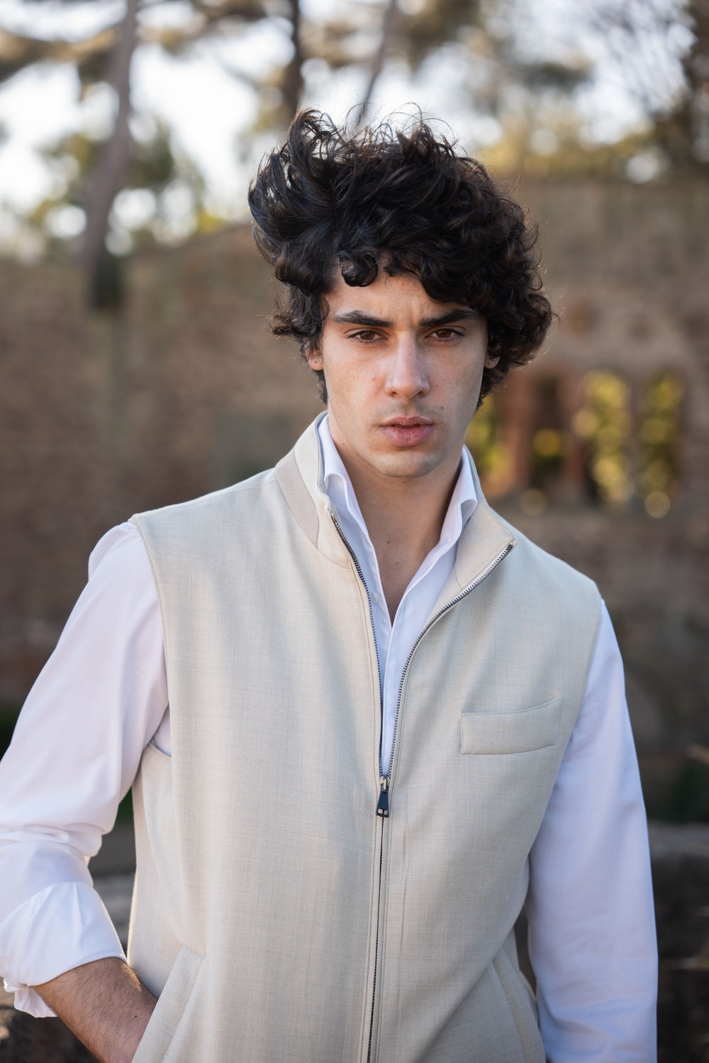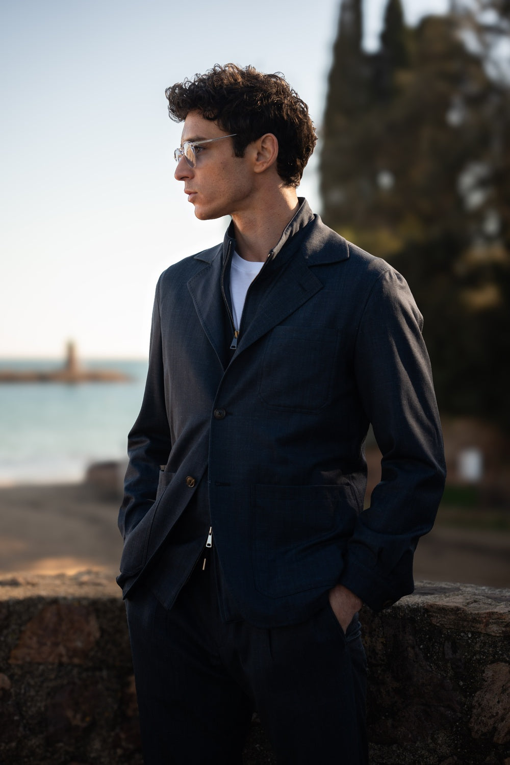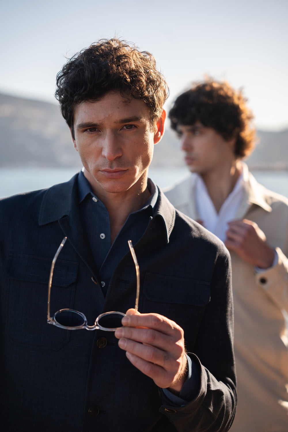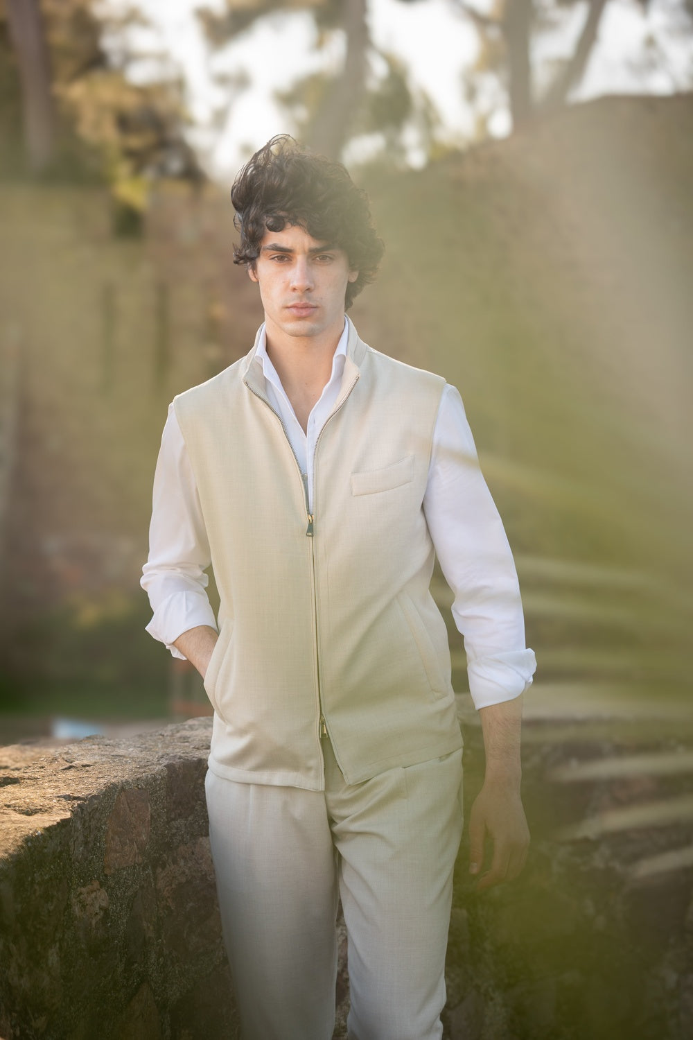 A clever duet of Merino wool and wool-linen-silk-blend jersey captures the season’s essence, soft to the touch, bold in character.